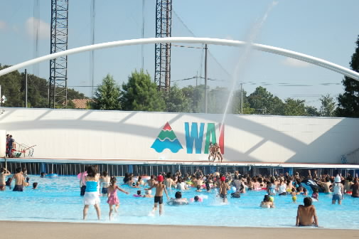 でも! プールはよみうりランドだけじゃない、このへんだったら。。。。。昭和記念公園のプールもある!! 携帯してたパソコンで調べたら、そっちなら今日は営業している!! でも、車で40分ぐらいかかるから、今から行っても2時間ぐらいしかいれないなぁ。。。