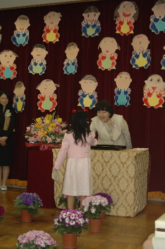 ▲修了証書を受け取る女神ちゃま。ご苦労さん!!(^O^)/ そして、卒園式の終盤は、子供たちが泣きじゃくってしまいっっ 一番先に泣き出したチエ先生は今度は笑ってしまってますっっ(^。^;)