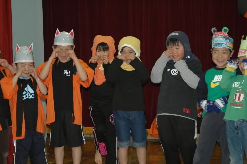 ▲こちらは卒園式後の劇。女神はぐるぐる忍者役f^_^; 右がウワサのほっちゃん。いいキャラしてます! 左の2人もいいキャラしてるんですよっっ みんなカワイイ~ 劇も上手にできました!!