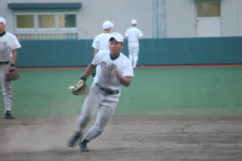 練習はフリーバッティング、1本バッティングを一通りやった後、ノックへと入っていきます・・・いつもの帝京の練習です。。。。が、このノックがスゴイです。。。帝京グラウンドは周りが木で覆われているし、一般の人は外から練習を見ることができません。みんなに見せられないのが残念ですが、私はいつもこの前田監督の鬼ノックに釘付けになってしまいます。この日も、最初はネット裏の小屋の椅子に座ってみていたのですが、だんだんと力が入ってきて、スリッパを脱いで、椅子の上に正座をして、身を乗り出して見てしまいました(^^;;)