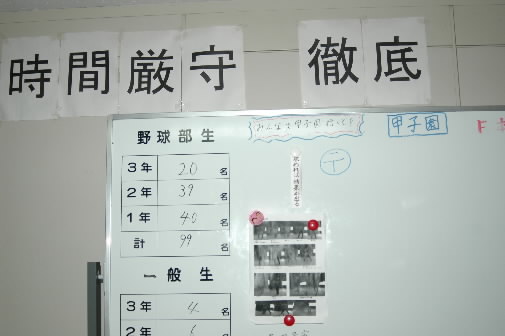 ボードには…「みんなで甲子園いくぞ!」の文字。さらに右にもう一度〝甲子園〟の文字。