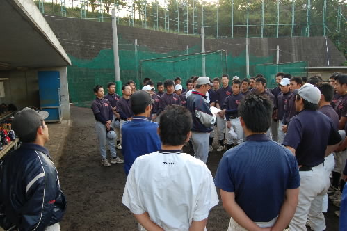▲練習後、上田監督が今後のことについて話していますっっ 関東大会と試験が重なってしまってるけど、両方全力を尽くそう! というような話しですね!