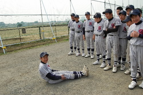 ▲続いて登場はファーストの片岡奨くん! 見よ! この開脚!!これでどこに送球がきてもオッケー?(^^;;)
