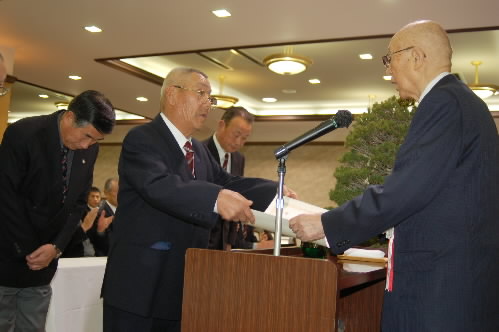 そして午後4時から、記念式典! 長年シニアの指導に携わってきた監督さん、理事さん、審判さんの表彰などが行われました~!