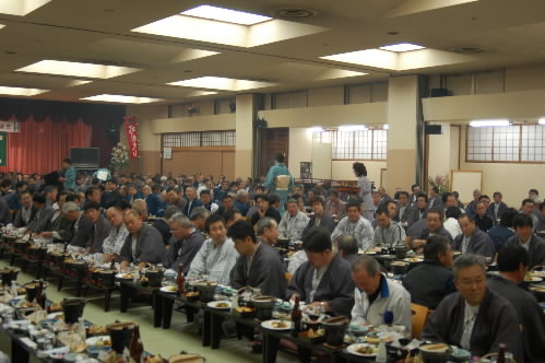 ▲いくつかの宴会場をぶち抜きにして、330人が全員座るとこりゃ~圧巻です!!