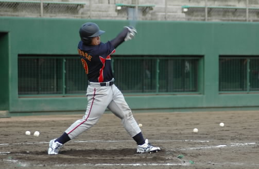▲フリーを5本2回やったのですが、10本中5本のホームランですよーーーっっ しかも、2本は江戸川区球場の場外へ消えていきました! 見ていたスタッフも「こりゃ将来プロだな」「だてに太ってないな(^_^;」って。(←そんな太ってないっすよ(^。^;)) それも、5本のうち3本はレフト方向ですが、1本は右中間、もう1本は、ジャイアンツカップの決勝でのホームランを思い出させるようなライトへのホームラン! 右打者で、ライトにあんな打球を打てる中学生って~!!(≧ε≦o) いやービックリっす。