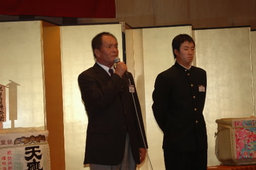 壇上で、應武監督と斎藤主将がごあいさつ・・・人がいっぱいで写真撮れん!(≧ε≦) 頑張ってみたけど、こんなんなったー!σ(゜∀゜*)