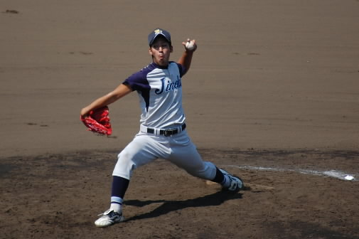 その榎本くんが中学3年の夏、緑中央が全国大会準決勝で負けたのが春日部シニアで、現在、立正大学にいる橋本達也くん(横浜高卒)などがいました。で、その春日部シニアに勝って全国制覇をしたのが世田谷西シニアでした。そのときのエースも、この桐蔭横浜大学にいるのです、吉見康平くんです!
