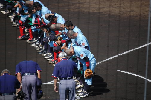 ▲横浜商大の選手の一部は丸刈りですっ 桐蔭横浜大の選手たちの話しによれば、「初戦のときはそうではなかった」とのことっ