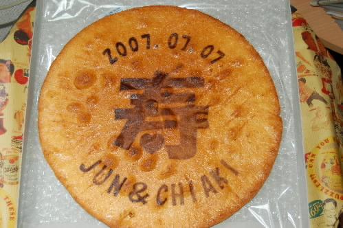 ▲ということで、プレゼントゲットいたしました!! ちなみに、顔よりも大きい草加せんべいでした! 新郎の出身地が草加市ですからね(^o^)丿