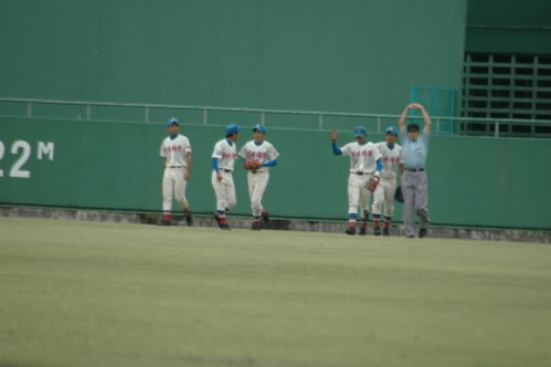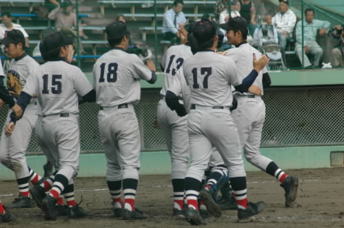 そうそう、横浜1点リードで迎えた8回表、1死からサードの1年生、筒香くんのエラーで走者を出してしまったとき、マウンドでエンジンを組んだのですが、そのとき、セカンドの松本幸一郎くん(2年・座間ボーイズ卒)が筒香くんがいる方に周り、肩を組んで笑顔で声をかけていた姿には感動しました。