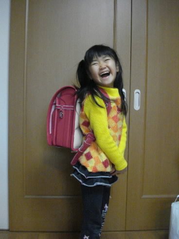 そして今日!決戦の日!! 取材を終えて夜家に帰り玄関のドアを開けると・・・・・女神が飛び出してきました~ 「ママ!! ランドセル買ってもらった~(≧▽≦)♪♪(≧▽≦)♪♪(≧▽≦)♪♪」 女神大喜び! 「で、色は??」 透かさず聞くママ・・・・