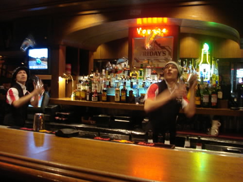 まず行ったお店は、「TGIフライデーズ」。六本木の駅からすぐ近く! アメリカでは有名なチェーン店で、中には日本人はほとんどいなくて、カウンターは全部外国人っっ なんだか海外にいるような雰囲気っっ で、そこには、昨年フレア・バーテンディング世界一になったミツくんと、先日日本一になって来月ラスベガスで行われる世界大会に行くマイケルがいました!