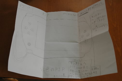 結局、「サンタさん、忘れたかもしれないし、今それがないのかもしれないから、もう1回、本体もくださいって手紙書いておけば!」とのママの言葉でちょっと立ち直り、再び「PSP本体の3000もください。カセットはありがとうございました」手紙を書いて窓においていました。