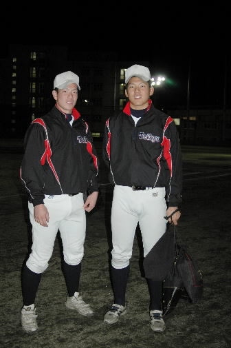 ヒガシとは…駒大2年生の東誠士郎くん! 前回、総合技術高校にて小田監督に取材させてもらった後、同じ取材で総合技術OBの東くんにも取材をさせてもらったのです! で、ついさっき、小田監督と東くんの話をしていたばかり。小田監督も今日、東くんがグランドに来るとは聞いていなかったようで、「噂をすればなんとかってやつですねー!~(゚∀゚)」ってお互いびっくりでしたっ!!