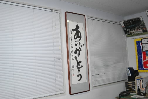 監督室には、広陵の合言葉…「ありがとう」の額が飾ってありました! チラっと右に見えるのは中井監督の机です(*^。^*)
