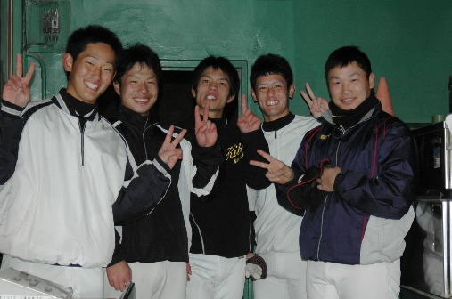 ←左から寺戸くん(佐賀大1年)、井上くん(修道大1年)、山田くん(吉備国際大)、石畑くん(明治大1年)、清原くん(どこだっけーっ大学2年)