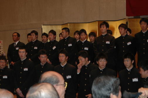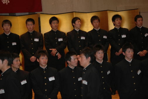 壇上で、應武監督と斎藤主将がごあいさつ・・・人がいっぱいで写真撮れん!(≧ε≦) 頑張ってみたけど、こんなんなったー!σ(゜∀゜*)