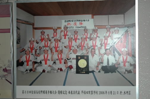 右側の集合が2006年の早実優勝の写真。旅館のお母さん、「ここに斎藤佑樹くんがいるのよ~」と丁寧に教えてくれました!その左の写真は帝京です!