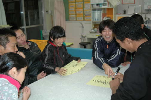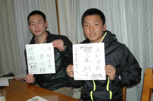事務室からもらってきた厚紙にサインする197センチの男・・・