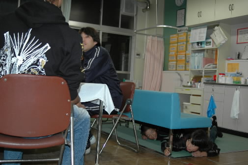 ここは保健室。。。イスの下には怪しい人影が・・・・