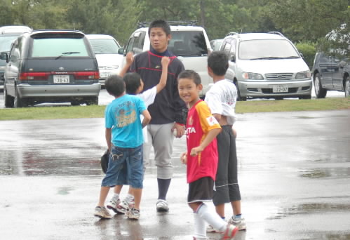 ▲それでも試合は続き、、、、最後は田んぼの中でやってるみたいなっっ かなり点差がつき、負けているチームの方から、「もうこのへんで。。。」とギブアップがあり、「ゲーム!」となりました。あんだけ降っていたら、さすがに危険だもんなぁ。。。