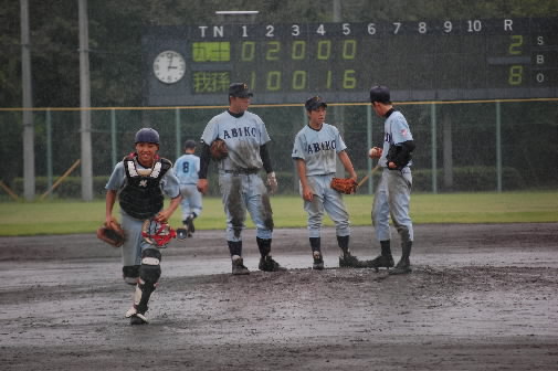 3試合目は途中から雷が鳴りしばらく中断。再開後も雨がザーザー降ってきて、、、、