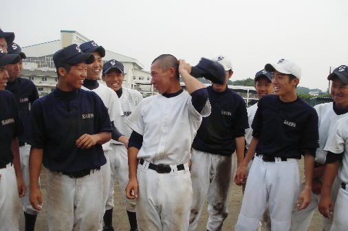三和高校はさっきも書きましたが部員が3学年で15人。3年生7人、2年生2人、1年生6人、つまり、この春、1年生が入ってくるまではたった9人しかいなかったのです。練習試合なんて大変で、真夏のダブルヘッダーなどは鼻血を出しながらも交代する選手がいなくて、話にティッシュを詰めてそれでも試合に出ていたということっっ この春6人の1年生が入ってきてくれて、上級生もほっとひと息。交代する選手ができてよかったね!!