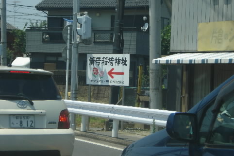 事前に下調べをしたら、確かに東松山市に「箭弓(やきゅう)町」というところがある! よし! そこを目指してレッツゴーだ~! だいたいの場所につき、ちょっとうろうろしていると、友達が「あ!」って。見ると、「箭弓稲荷神社」と書いてある看板が! おぉぉぉぉぉ~それだ!! と