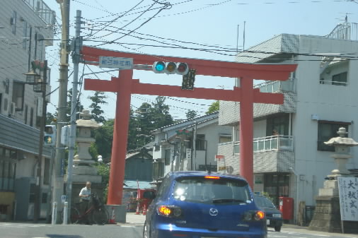 「箭弓稲荷神社」と書いた看板発見! その矢印どおりに進むと、「箭弓神社」という信号があって、そこにありました!「箭弓神社!!」