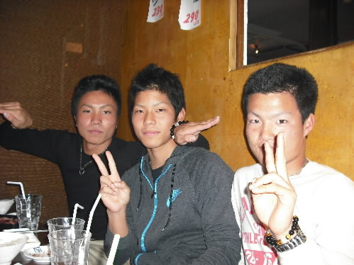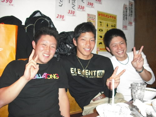 よく食った~(*゚ー゚) 左から、トクちゃん(兵庫の中学卒←中学名聞くの忘れたっ(^。^;))、タクミ(ヤング・SOLA沖縄卒)、アキラ(横浜青葉シニア卒)、シンタ(ジュニアホークスボーイズ卒)、ケンジ(ヤング・SOLA沖縄卒)、リョウ(千葉・船橋中卒)