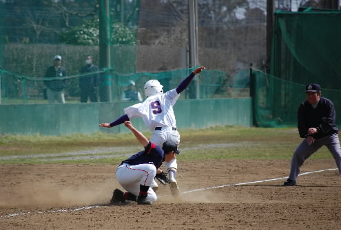 ▲で、佐倉で目についたのは1番を打ってるキャプテンの原田直道くん! バッティングセンスがあって、バットコントロールもうまいです。守備位置などを見て打ち分けられる選手。塁に出てからがこれまたいい! 常に前へ前への積極走塁。足も速くて気が付けば次の塁にたどり着いています。一つ盗塁死もあったけどね(^^)