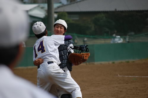 ▲キャッチャーの佐藤くん、「お前かよっっ ふつー、オレとマウンドにいる宮内が抱きつくんだろ!」っては言ってないけど、そんな感じの表情で苦笑いっっ でも、カズマくんはそんなの関係なしに超うれしそう!!o(^ヮ^)o