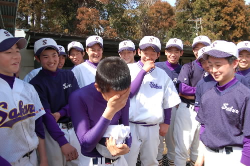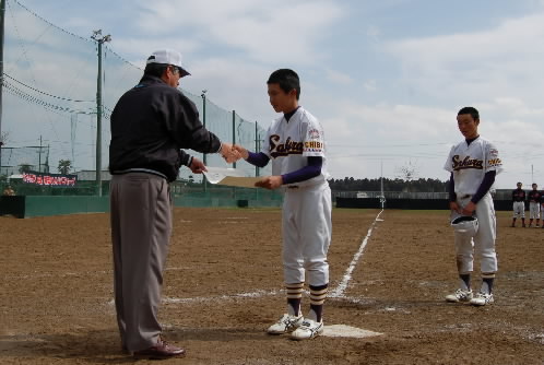 ・・・・と思って表彰式後、ナインに聞いてみたらっっっ?? 副キャプテンでも何でもなかったんだって~!! 聞けば、とっても元気がよくてムードメーカーとしてもいい機能をしてるので、今朝、ベンチキャプテンになったそうで(*^。^*) (ダレが決めたか? 自薦だったのか他薦だったのかは不明っっ) で! 表彰式ではちゃっかり前に出て、一番目立つ賞状をちゃっかりもらっちゃったって~o(^ヮ^)o カズマくんもいい味出してますけど、そんな彼を「アイツならしょうがねー」って許しちゃうナインもまたいいねーっっ (*^。^*)