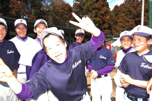 ▲表彰式後、喜びを爆発させる佐倉ナイン。そして右は、試合後、優勝の喜びを体で表現してくれた小川将史くん! 「やったー! 優勝~!☆(゜▽゜)☆」