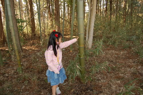 ▲裏の竹やぶに竹の子が生えている!と聞いて、竹やぶを探検に! 竹の子を発見した後、女神ちゃまは一番太い竹の前に立ち。。。「ここ、黄色く光ってる! これだ!!」って。何かと思ったら、真剣な顔で「小判ばザックザック入ってるかも!!」だって~ 日本昔話しの世界っすね~ 「かぐやひめが入ってるかもぉぉ~ でもこんなところに入ってるのかなっっ」って、しきりに竹を眺めていましたo(^ヮ^)o