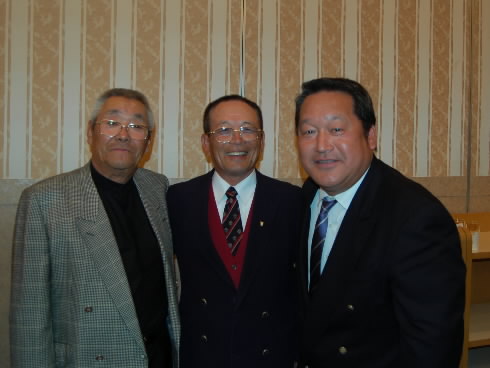 いろいろ写真撮ったんだけど、おもしろい写真が撮れたのでこれ紹介! 左から甲府南シニアの名物監督・中川巌さん! 中野シニアの櫛田会長、右が八王子シニアの和田監督! 撮れた写真を周りにいた人みんなで見て、「和田監督の顔が3倍デカイ!!(≧▼≦;;;」って大うけっっ 和田監督、「オレは前にいたんだ!」という弁明も、「いやいや、ちゃんと横に並んでるぅぅ~ 今度は遠近法使って、後ろにいってた方がいいよ!」ってo(^ヮ^)o 和田監督、ホント、デッカイっす、顔☆(゜▽゜)☆