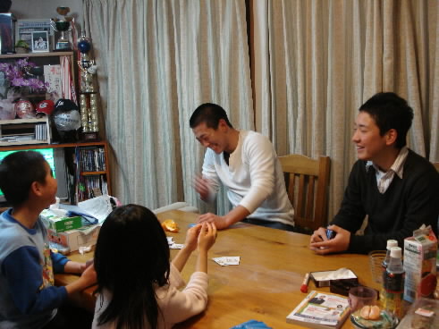 ▲食後は、いつものようにトランプ(大富豪)で大盛り上がりっっ トランプだろうが、勝ちへの執念をとことんみせる岡部は「ぜってー負けね~」と気合い入りまくり! その言葉通りしっかり勝利! 負けたのは健介! 顔に落書きされて、ゲラゲラ大笑いっっ(*≧∇≦)b 笑っていたら、私も負けて顔に書かれてしまった(^^;;)
