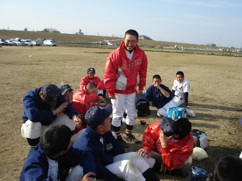 ▲こんな感じで立ってるだけ(^。^;) 「こういうの慣れてないんでっっ(゜~゜;) 今度のときまでに練習させておきます!」と必死にフォローの木村コーチでした! 新しくコーチになった二松学舎沼南高校出身の木村コーチ。若くて元気あっていいですね! 選手くんたちも見習って元気よくね~!!