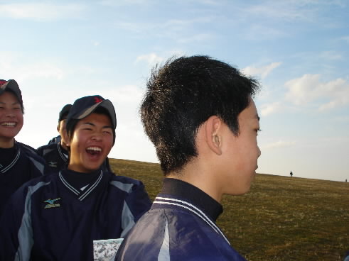 ▲お弁当タイムを覗いたら、いきなり「もえ~(*^。^*)」な選手くん登場! 秋葉原に住んでいる石塚徹くん(2番・センター)! 「もえ~」なのに、彼女は「ヒロ○」 別名、まゆげ王子? すね○王子? ワキ○王子?(それはないらしいぃ(^^;;)) ウリは「まゆ毛です!!」 お~立派立派!!