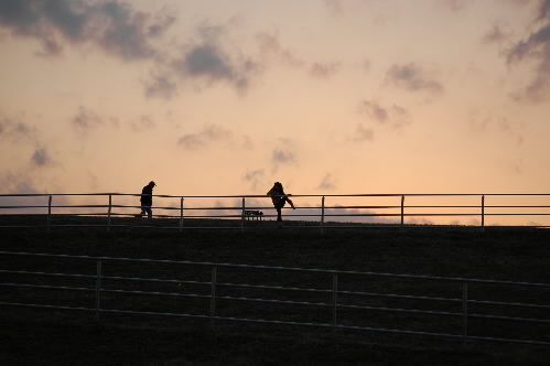 ▲後ろを振り向けば、、、、まだ千葉西シニアは「いちにっさん! いちにっさん!」ってやっています!! ありゃー、足ガクガクになるなぁ 明日、歩けるんだろか(^_^;