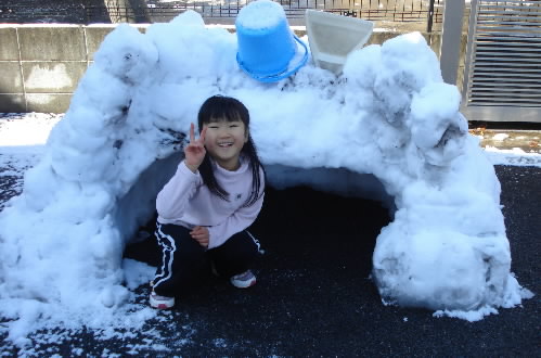 ▲昨日作ったかまくらは、妙に小さくなっていて、人一人も入れない状態になってました(^_^; 女神曰く「メルちゃん用だ(:_;)」