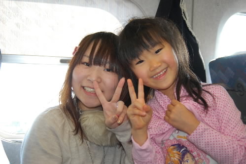 ということで、新大阪までの約2時間、女神はお姉さんと楽しく過ごしていたようです~!! 京都をすぎたあたりから、私も一緒にお姉さんとおしゃべり。栃木の実家に帰省していた21歳の麻衣子お姉さんは、現在住んでいる大阪に帰るところだそうで! ちっちゃい子向けのキャラクターグッツなどの絵を描くお仕事をしているそうで、子供が大好きだそうです~