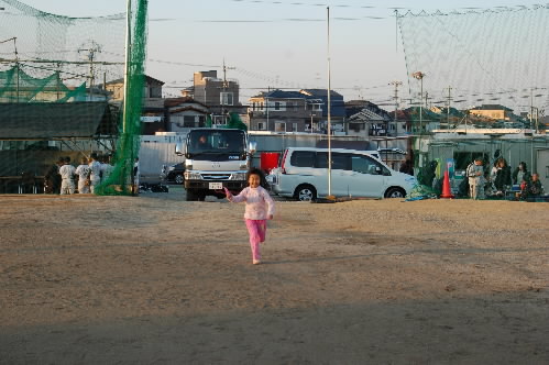 さて! 女神ちゃま。今日は「げしうらくん」ほか選手たちに会うのも一つの楽しみで(^o^) でも、会うと恥ずかしいみたいで、近くに行くと、私のコートの中にもぐりテレまくってましたっっ その他の時間は、グラウンドで縄跳びしたり、走り回ったり、元気いっぱいでした~!