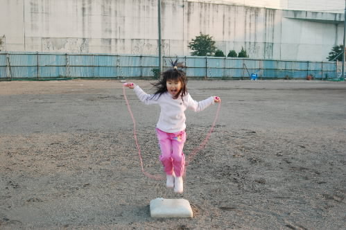 ▲練習してない時間にはさっとグラウンド入って縄跳びじゃ~!! おっと後ろからトラック!