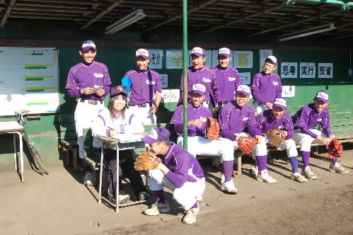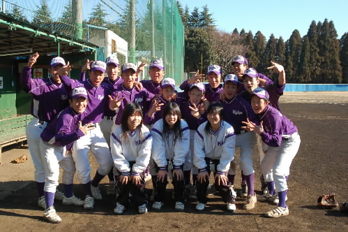 熱演後、女子マネちゃんを囲んでの集合写真! 自主練中なので帰ってしまった選手くんもいっぱいいます。あしからず~(^_^;