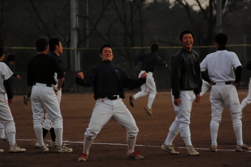選手たちが学校からグラウンドに来るまでの間は、岡本監督の熱い、熱い、熱いトークを聞いてましたo(^ヮ^)o この熱いトークがもー、面白かったんですね~(*^。^*) とにかく、頷いて、笑って、うなずいて、笑って、の繰り返しぃぃ あの、いい意味での適当さ、すべて本音を言っちゃうところもまた、他の高校監督さんにはない、いい部分っすね~o(^ヮ^)o ほんと、いい味出してて、岡本監督、好きです(*´艸`)