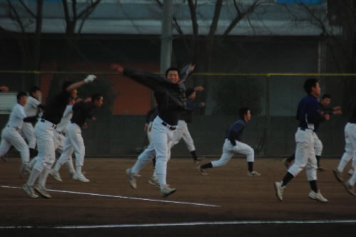 ▲このゴリラウハウハポーズはだれっっ(*´艸`) 空は夕日がとってもきれい。何度カメラを向けてもピースしたりポーズしてくれるノリのいい選手たちo(^ヮ^)o
