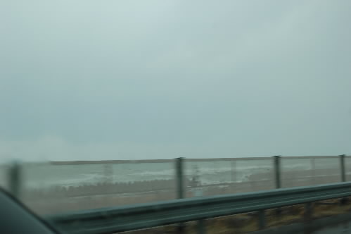 その後、空港でレンタカーを借りて、金沢市内へと車を走らせました! 北陸自動車道を走ると、左には・・・・・日本海です!! 雨が降って天候が悪いせいか、波が荒々しく感じます。運転しながらなので、あんまりよそ見もできませんでしたが、つい先日みた、九州・玄界のおだやかな青い海とはまったく違う海。波は白く、とても冷たい感じの海でした。。。。