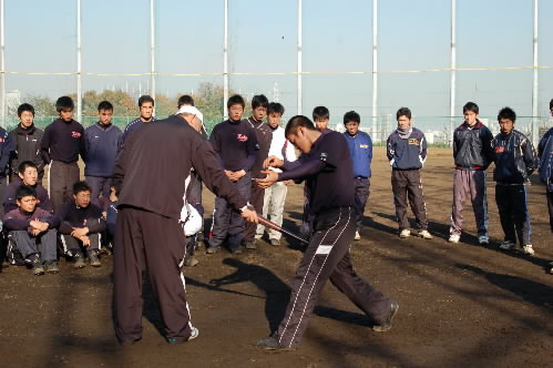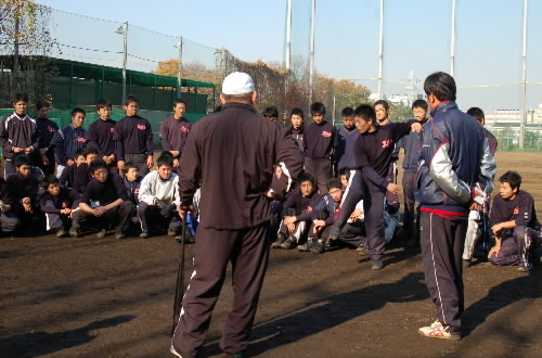 で! 今日は、JR東日本の堀井哲也監督が塾高グラウンドにいらっしゃっていました。でもって、午前中は投手陣、午後はバッティングの指導をしていらっしゃったのですが!! 技術指導に定評のある堀井監督のお話し、私もちゃっかり後ろの方で聞かせていただいちゃったのですが!! なるほど~とか、そうなんだ~って思うことばかり! 私にとっては難しいところもたくさんあったので、聞いてそれを理解するのが大変でしたけど、でもでも、とっても勉強になりました!! いや~、たまたまですが、こんないいお話を聞けるなんて、なんとラッキーなのでしょーっっ(≧▽≦)♪♪